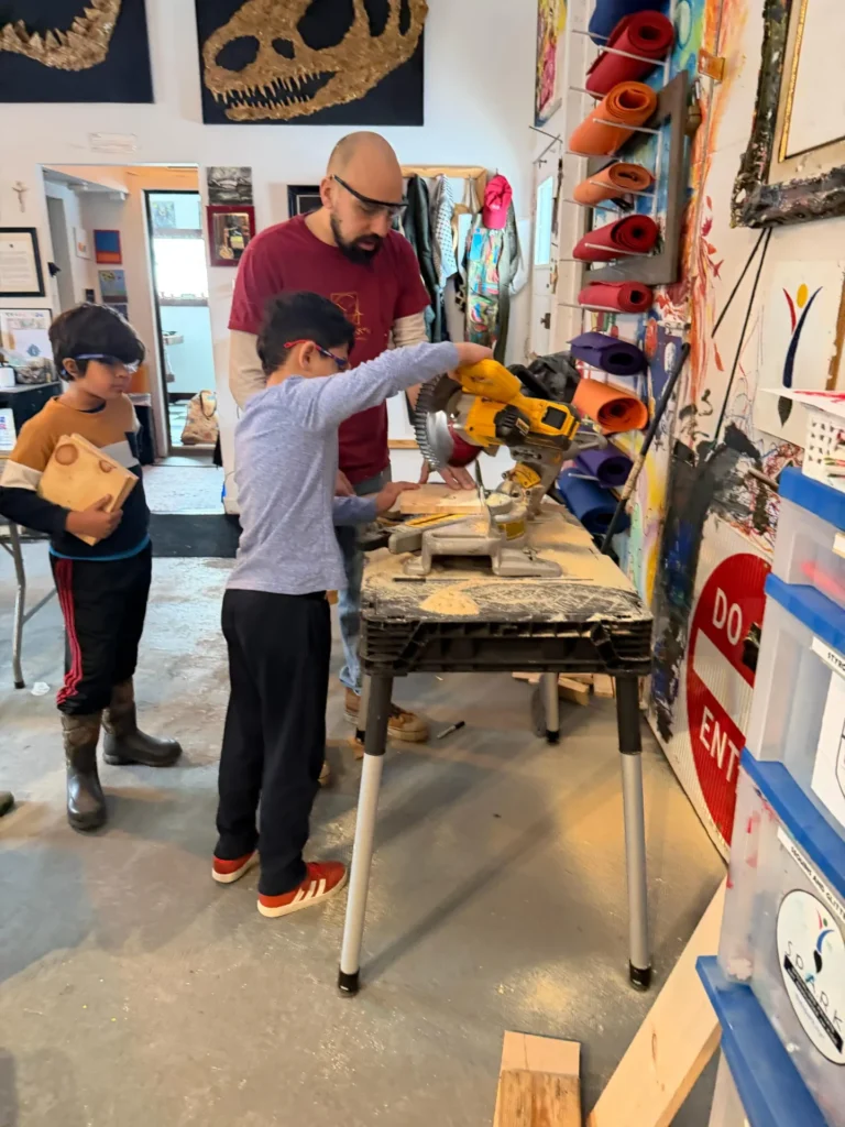 When power tools are used, they are introduced intentionally -after readiness, training, and clear expectations. Some tools may be staff-operated for certain ages/projects, with students participating through setup, clamping, measuring, marking, sanding, and assembly.